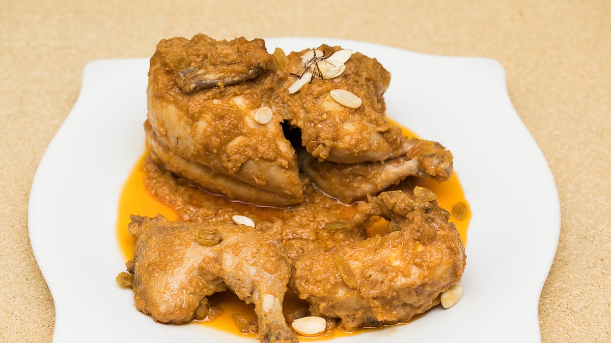 প্রণালি: সব উপকরণ দিয়ে মুরগি মেখে নিন। কাঁটাচামচ দিয়ে কেঁচে এক ঘণ্টা রেখে দিতে হবে। তারপর মসলা থেকে তুলে মুরগির টুকরাগুলো ডুবোতেলে হালকা ভেজে তুলে রাখতে হবে। ঘি ও তেল গরম করে এলাচি, দারুচিনির ফোড়ন দিয়ে দিন। এলাচিবাটা বাদে বাকি সব উপকরণ দিয়ে কষিয়ে নিতে হবে। এবার দুধে এলাচিবাটা মিশিয়ে নিতে হবে। ফুটে উঠলে ভাজা মুরগি দিয়ে দিন। ঝোল কমে এলে দুধে ভেজানো কেশর ও মাওয়া দিয়ে দমে ১০ মিনিট রান্না করে পরিবেশন করতে হবে।