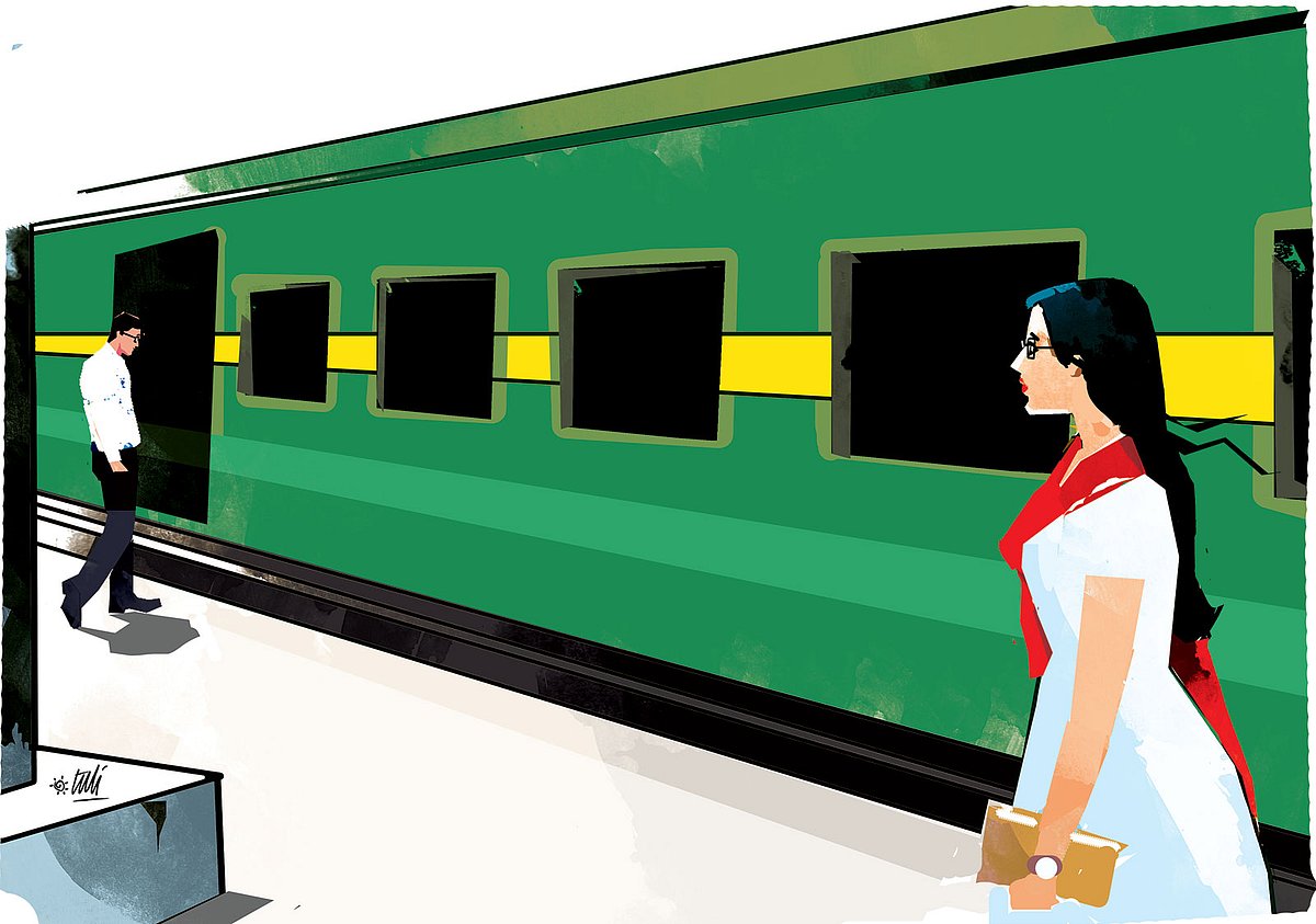 আশপাশে তাকাতেই আফনান দেখলেন বছর তিনেক বয়সের একটা ছেলে, একটা ভাঙা ঝুড়ির ভেতর মাথা ঢোকানোর চেষ্টা করছে, আর কিছুক্ষণ পরপর ঝুড়িটাকে বুকে চেপে ধরে ফিক করে হেসে দিচ্ছে। আফনান কাছে গিয়ে, হাঁটু ভাঁজ করে বসে বললেন, ‘বাবা! আমি যদি তোমাকে কিছু খাবার দিই, তুমি নেবে?’ ছেলেটা হাত বাড়িয়ে খাবারের থলেটা নিল, তারপর স্যালুট দেওয়ার মতো ভঙ্গি করল। আফনানের মনে হলো বাচ্চাটার কাছে কিছুক্ষণ বসতে পারলে হতো, কিন্তু ট্রেন ছাড়তে আর বাকি তিন মিনিট। আজকাল বাংলাদেশের ট্রেন সব অনটাইম। হঠাৎ একদিন সব ট্রেন ঠিক সময়ে ছাড়তে শুরু করল, কিছু কিছু জিনিস এই দেশে হুট করেই হয়। আফনান এবার উঠলেন, কম্পার্টমেন্টের কাছে আসতেই আটকে গেল পা। হালকা নীল বর্ণের সালোয়ার-কামিজ পরা মেয়েটা ট্রেনের সঙ্গে হেলান দিয়ে দাঁড়িয়ে আছে। তার চোখে ভারী চশমা, হাতে বেশ কিছু বই, লম্বা চুল বাতাসে উড়ছে। হাতে থাকা পানির বোতল থেকে পানি খাচ্ছিল মেয়েটা, মুখে পানি নিয়েই আফনানের দিকে তাকাল। মেয়েটাকে আফনান চেনেন—তার নাম অগ্নি! ০৪ ব্যাচ, বিভাগের প্রথম ব্যাচ ওরা। তা ছাড়া আফনানের শিক্ষকতা-জীবনেরও প্রথম ব্যাচ। তাই ওদের সঙ্গে বন্ধুর মতোই সম্পর্ক ছিল। অগ্নি মাস্টার্সে প্রথম হয়েছিল। আফনান তাঁর একজীবনে অগ্নির চেয়ে সুন্দর কাউকে দেখেননি। এই রাগী রাগী মেয়েটার সবকিছু ম্যানেজ করে ফেলার একটা অদ্ভুত গুণ ছিল। কিন্তু এই সবকিছুর বাইরেও অগ্নিকে মনে রাখার আরও হাজারটা কারণ আছে আফনানের। একটা কারণ এটা হতে পারে, প্রাণ দিয়ে ভালোবেসেছিলেন অগ্নিকে। অন্য একটা কারণ, তিনি এখনো অগ্নিকে ভালোবাসেন।