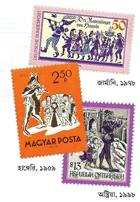 তুমি নিশ্চয়ই হ্যামিলিনের বাঁশিওয়ালার কাহিনি জানো। অনেক ইতিহাসবিদের মতে, হ্যামিলিনের ঘটনা কেবল গল্প নয়। ছোট্ট শহর হ্যামিলিন ছিল জার্মানিতে। হ্যামিলিনের জাদুঘরে আজও একটি প্রাচীন টিনের বাঁশি আছে। ধারণা করা হয়, প্রাচীনকালে ইঁদুর-শিকারিরা এ ধরনের বাঁশি ব্যবহার করত। আর ইতিবাসবিদদের মতে, হ্যামিলিনের ঘটনাটি ঘটেছিল ১২৮৪ সালের জুলাই মাসে। তো এই গল্প ধরে ১৯৫৯ সালে হাঙ্গেরি একটি ডাকটিকিট প্রকাশ করে, জার্মানি করে ১৯৭৮ সালে, আর অস্ট্রিয়া ১৯৯৮ সালে। ডাকটিকিটগুলো দেখতে দেখতে গল্পটিও আবারও শোনাচ্ছেন নিজাম বিশ্বাস