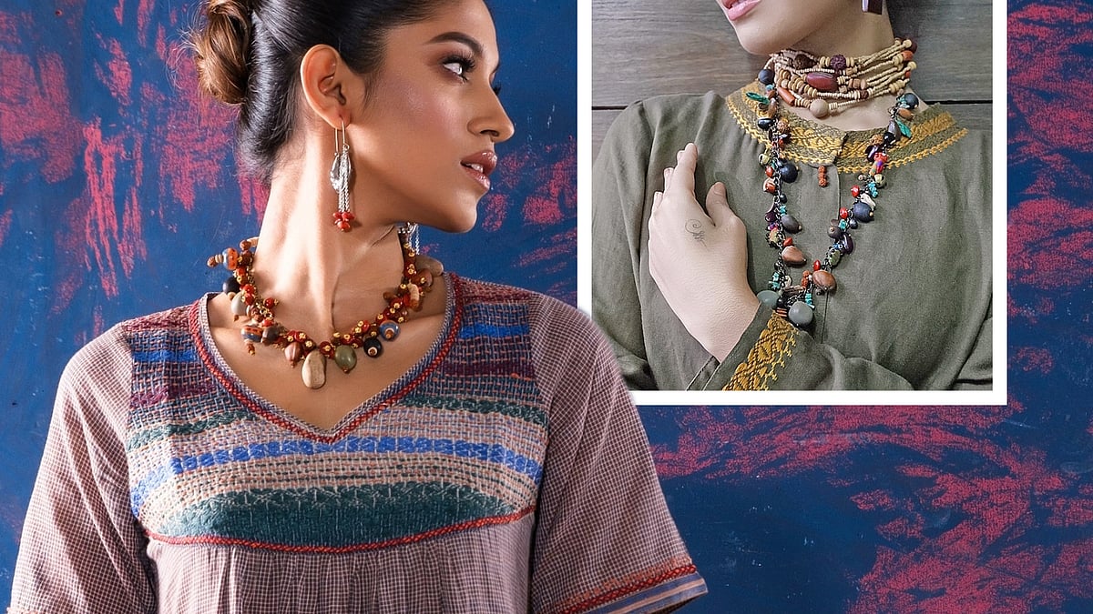 মিলিয়ে দেখুন তো, আপনার শার্টের যে আলপনা, স্কার্টের যে মোটিফ বা শাড়ির যে রঙের সমাহার, অথবা গয়নার ফুলেল নকশা—সেগুলো কোত্থেকে এল? সহজ প্রশ্নের সহজ উত্তর, বেশির ভাগই এসেছে আমাদের চারপাশের প্রকৃতি থেকে। এই ফুল, পাতা, লতার বাহার থেকে। এই যে ছাইরঙা শাড়ির টকটকে কমলা পাড়, আঁচলে রঙিন ফুল, মনে করুন তো এসব কোথায় দেখেছেন? পিচঢালা পথে পড়ে থাকা শিমুল, পলাশ, কৃষ্ণচূড়ার সঙ্গে মিলে যাচ্ছে না? মাধুরী সঞ্চিতা ঠিক এভাবেই ভেবেছেন। তিনি আরও একধাপ এগিয়ে প্রাকৃতিক উপাদান থেকেই বানাচ্ছেন গয়না। কখনো সেগুলো আবার শাড়ির আঁচলেও জুড়ে দিচ্ছেন।