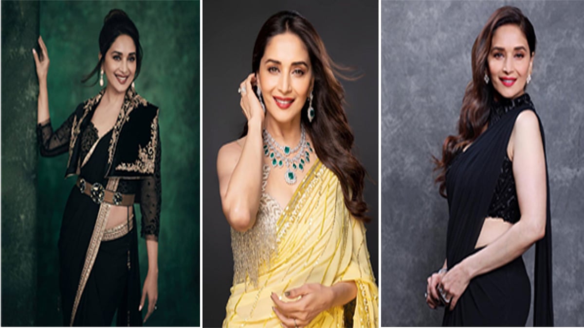 যদি সেরা পোশাক নির্বাচনের ক্ষেত্রে কোনো জরিপ হয়, সে ক্ষেত্রে বাঙালিরা হুমড়ি খেয়ে ভোট দেবে শাড়িকে। কেবল বাংলাদেশেই নয়, ভারত, পাকিস্তান, শ্রীলঙ্কার নারীদের কাছেও শাড়ি ব্যাপক জনপ্রিয়। বলিউড তারকাদেরও চমৎকার মানিয়ে যায় শাড়ি। দেখে নেওয়া যাক বাঙালির ঐতিহ্য, ইতিহাস আর সংস্কৃতির সঙ্গে জড়িয়ে থাকা শাড়ি কেমন মানিয়েছে ৫৪ বসন্ত পেরোনো মাধুরী দীক্ষিতকে। ১২টি লুকে দেখা যাক বাহারি শাড়িতে চিরসবুজ মাধুরীকে—