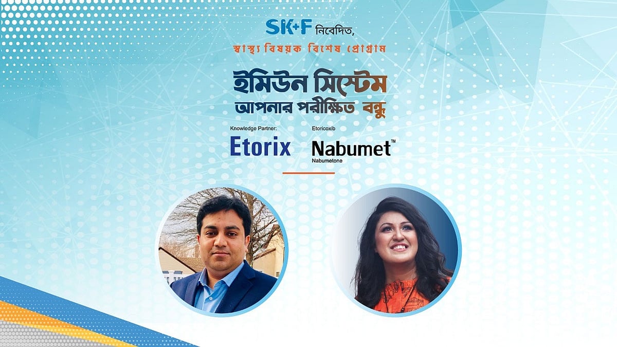 ইমিউন সিস্টেম ঠিক থাকলে একজন মানুষ বিনা রোগে দীর্ঘদিন হেসেখেলে বাঁচতে পারে। এই নিয়ে আলোচনা হলো প্রথম আলো আয়োজিত এসকেএফ নিবেদিত স্বাস্থ্যবিষয়ক বিশেষ অনুষ্ঠানে। নাম ‘সুস্থতা স্বাভাবিক অসুস্থতা অস্বাভাবিক’। এবারের প্রতিপাদ্য ‘ইমিউন সিস্টেম আপনার পরীক্ষিত বন্ধু’। নাদিয়া নিতুলের সঞ্চালনায় অনুষ্ঠানে অতিথি হিসেবে ছিলেন আমেরিকান বোর্ড সার্টিফায়েড বিশেষজ্ঞ, ব্যাক ইন মোশন লিমিটেড ঢাকার চিফ মেডিকেল কনসালট্যান্ট ডা. মো. আবদুল্লাহ ইউসুফ। অনুষ্ঠানটি ১৭ জুন প্রথম আলো ও এসকেএফের অফিশিয়াল ফেসবুক পেজ থেকে সরাসরি সম্প্রচার করা হয়।