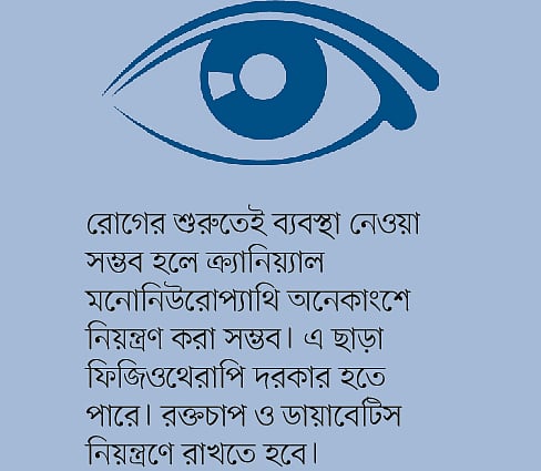 যেসব রোগ থেকে কোনো নার্ভ ক্ষতিগ্রস্ত হওয়ার আশঙ্কা থাকে, সেগুলোর ব্যাপারে জরুরি ব্যবস্থা নেওয়া উচিত। রোগের শুরুতেই ব্যবস্থা নেওয়া সম্ভব হলে এ সমস্যা মানে ক্র্যানিয়্যাল মনোনিউরোপ্যাথি অনেকাংশে নিয়ন্ত্রণ করা সম্ভব। এ ছাড়া ফিজিওথেরাপি দরকার হতে পারে। রক্তচাপ ও ডায়াবেটিস নিয়ন্ত্রণে রাখতে হবে।