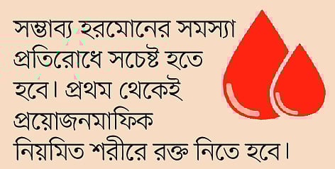 সম্ভাব্য হরমোনের সমস্যা প্রতিরোধে সচেষ্ট হতে হবে। প্রথম থেকেই প্রয়োজনমাফিক নিয়মিত শরীরে রক্ত নিতে হবে। কোনো অবস্থায় হিমোগ্লোবিনের মাত্রা ৯.৫ গ্রাম/ডিএলের নিচে নামতে দেওয়া যাবে না।