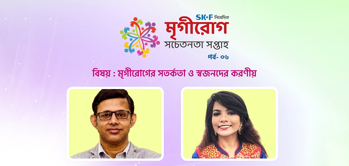 আমাদের দেশে নানা ধরনের কুসংস্কারের জন্য মৃগীরোগীরা অনেক বঞ্চনা-গঞ্জনার শিকার হয়। এমনকি আত্মীয়স্বজনের কাছ থেকে বৈষম্যমূলক আচরণ পেয়ে থাকে। সমাজে তাদের অন্য দৃষ্টিতে দেখা হয়, যা মোটেও ঠিক নয়। এ নিয়েই আলোচনা হলো আন্তর্জাতিক মৃগীরোগ দিবস উপলক্ষে প্রথম আলোর উদ্যোগে আয়োজিত বিশেষ অনুষ্ঠান ‘এসকেএফ নিবেদিত মৃগীরোগ সচেতনতা সপ্তাহ’-এর ষষ্ঠ পর্বে। এবারের বিষয়: মৃগীরোগের সতর্কতা ও স্বজনদের করণীয়।