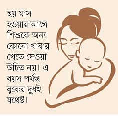 ছয় মাস হওয়ার আগে শিশুকে অন্য কোনো খাবার খেতে দেওয়া উচিত নয়। এ বয়স পর্যন্ত বুকের দুধই যথেষ্ট।
