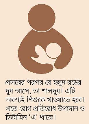 প্রসবের পরপর যে হলুদ রঙের দুধ আসে, তা শালদুধ। এটি অবশ্যই শিশুকে খাওয়াতে হবে। এতে রোগ প্রতিরোধ উপাদান ও ভিটামিন