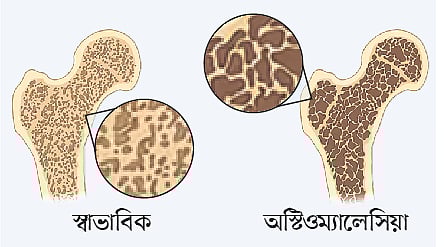 অস্টিওম্যালেসিয়া রোগটি মূলত ভিটামিন ডির অভাবজনিত রোগ। এতে হাড় দুর্বল বা নরম হয়ে পড়ে। ভিটামিন ডির অভাবে শিশুদের যে রোগ হয়, সেটিকে বলে রিকেট। আর এ রোগ যখন বড়দের দেখা যায়, তখন বলে অস্টিওম্যালেসিয়া।