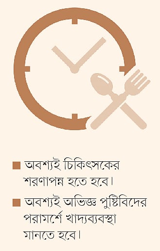 অবশ্যই অভিজ্ঞ পুষ্টিবিদের পরামর্শে খাদ্যব্যবস্থা মানতে হবে।