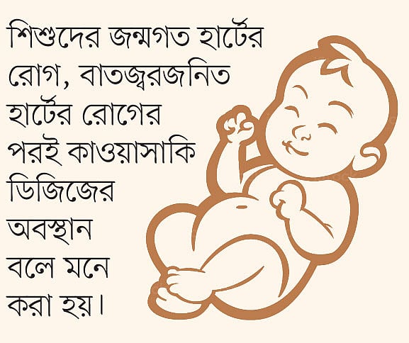 শিশুদেরও হার্টের নানা সমস্যা হতে পারে। যেমন জন্মগত হার্টের অসুখ, বাতজ্বরজনিত হার্টের রোগ, সংক্রমণজনিত হার্টের রোগ। বাতজ্বরজনিত হার্টের অসুখ অবশ্য অনেকটাই কমে এসেছে। কিন্তু আজকাল হার্টের একধরনের বিরল রোগ বাড়তে দেখা যাচ্ছে। রোগটির নাম কাওয়াসাকি ডিজিজ। জাপানি চিকিৎসক তমিসাকু কাওয়াসাকি ১৯৬৭ সালে প্রথম এই রোগ শনাক্ত করেন।