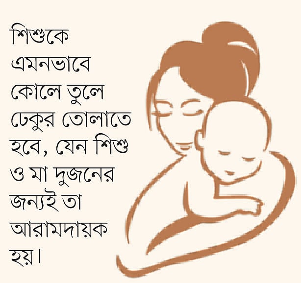 শিশুকে এমনভাবে কোলে তুলে ঢেকুর তোলাতে হবে, যেন শিশু ও মা দুজনের জন্যই তা আরামদায়ক হয়। এ জন্য প্রয়োজন—