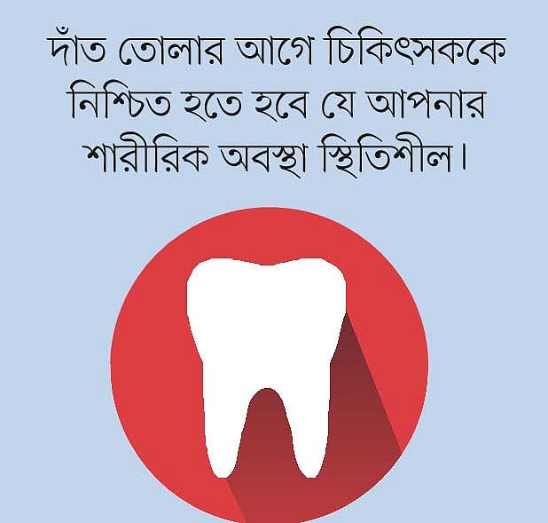 দাঁত তোলার আগে চিকিৎসককে নিশ্চিত হতে হবে যে আপনার শারীরিক অবস্থা স্থিতিশীল।