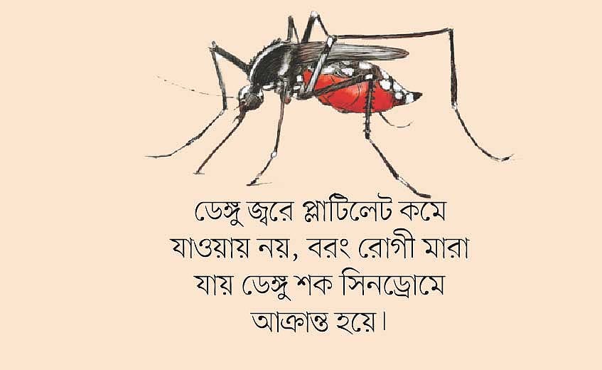 ডেঙ্গু জ্বরে প্লাটিলেট কমে যাওয়ায় নয়, বরং রোগী মারা যায় ডেঙ্গু শক সিনড্রোমে আক্রান্ত হয়ে। তাই প্লাটিলেটের সংখ্যা ১০ হাজারের ওপরে থাকলে ও রক্তপাত (অ্যাকটিভ ব্লিডিং) না থাকলে, এ নিয়ে আতঙ্কিত হওয়ার কারণ নেই।