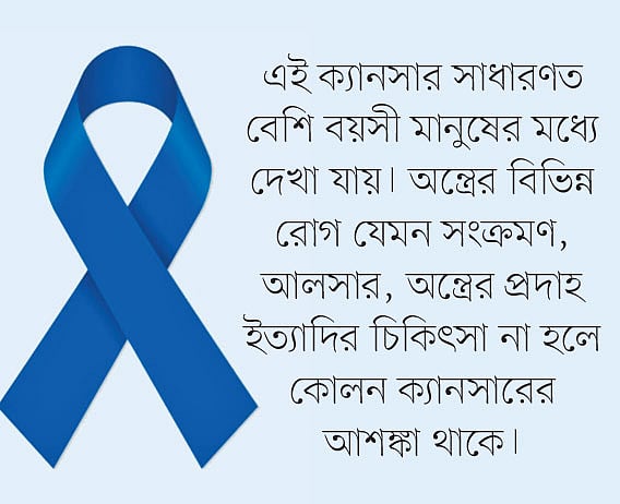 অন্ত্রের বিভিন্ন রোগ যেমন সংক্রমণ, আলসার, অন্ত্রের প্রদাহ ইত্যাদির চিকিৎসা না হলে কোলন ক্যানসারের আশঙ্কা থাকে। ধূমপায়ীরা কোলোরেক্টাল ক্যানসারের উচ্চ ঝুঁকিতে থাকেন। খাবারে আমিষের আধিক্য থাকলে কোষ্ঠকাঠিন্য হয়। আর দীর্ঘ সময় কোষ্ঠকাঠিন্য থাকলে কোলন ক্যানসারের ঝুঁকি বাড়ে। ডায়াবেটিস রোগী বা যাঁদের ইনসুলিন রেজিস্ট্যান্স আছে, তাঁদেরও ঝুঁকি রয়েছে। অতিরিক্ত ওজনও একটি ঝুঁকি।
