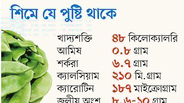 শিমভর্তা অপছন্দ, এমন লোক খুঁজে পাওয়া কঠিন। মৌসুমের শুরুতে বাজারে আসা কচি শিম দিয়ে মাছের ঝোল অতি উপাদেয়। আবার যাঁরা নিরামিষভোজী, শিম তাঁদের খাদ্যতালিকায় রাখতে হয়। কারণ, সুস্বাদু এই সবজি আমিষের বড় উৎস।
