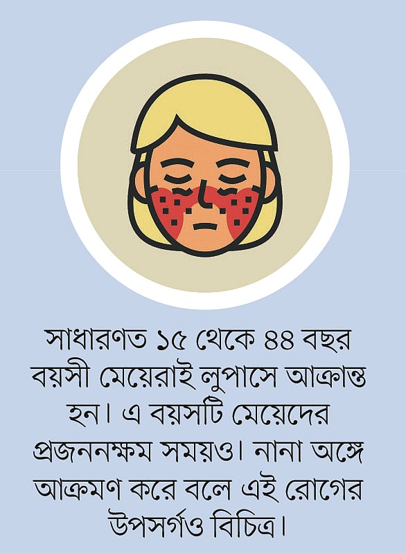 সাধারণত ১৫ থেকে ৪৪ বছর বয়সী মেয়েরাই লুপাসে আক্রান্ত হন। এ বয়সটি মেয়েদের প্রজননক্ষম সময়ও।