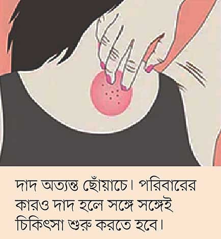 এ চর্মরোগ অত্যন্ত ছোঁয়াচে। তাই পরিবারের কারও দাদ হলে সঙ্গে সঙ্গেই চিকিৎসা শুরু করতে হবে।