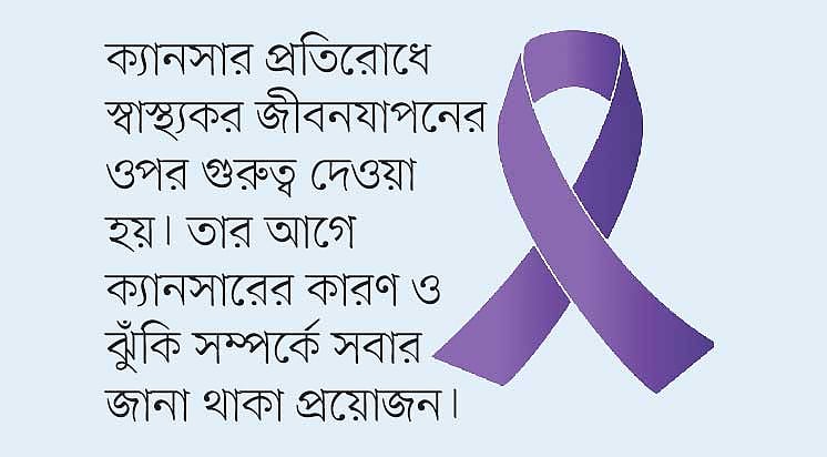 স্বাস্থ্যকর জীবনযাপন অনেক ক্ষেত্রে ক্যানসার প্রতিরোধে সহায়ক। প্রাথমিক পর্যায়ে ৮০ শতাংশ ক্যানসার এই উপায়ে প্রতিরোধ করা যায়। চলতি অক্টোবরে ক্যানসার সচেতনতা মাস চলছে। তাই এ সময়ে সচেতনতা তৈরি করার জন্য ক্যানসারের কারণ ও ঝুঁকি সম্পর্কে সবার জানা থাকা প্রয়োজন।