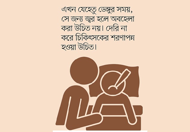 এখন যেহেতু ডেঙ্গুর সময়, সে জন্য জ্বর হলে অবহেলা করা উচিত নয়। দেরি না করে চিকিৎসকের শরণাপন্ন হওয়া উচিত।