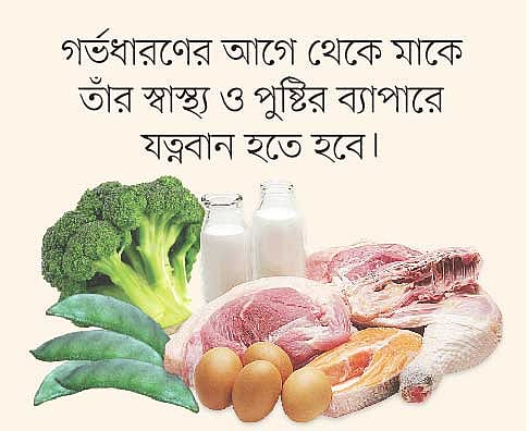 মা যদি কৃশকায় হন বা বেশি ওজনের হন, তবে উচ্চতা অনুযায়ী সঠিক ওজন অর্জন করতে হবে প্রথমে। নিয়মিত হালকা ব্যায়াম করতে হবে। ডায়াবেটিসে আক্রান্ত মায়েদের গর্ভধারণের আগে চিকিৎসকের পরামর্শ অনুযায়ী ৩–৫ মাস আগে থেকে খাওয়ার বড়ি বাদ দিয়ে ইনসুলিন নেওয়া শুরু করতে হবে। রক্তে হিমগ্লোবিন এ১সি–এর মাত্রা ৬.৫ শতাংশের কাছাকাছি এলে চিকিৎসকের সম্মতিতে গর্ভধারণের চেষ্টা করতে হবে।