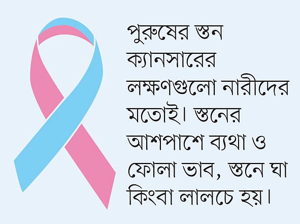 নারী-পুরুষ মিলিয়ে ১ শতাংশ স্তন ক্যানসার হয় পুরুষের। নারীর চেয়ে পুরুষের মৃত্যুর হার ১৯ শতাংশ বেশি। তাই প্রথম থেকেই সাবধান হওয়া দরকার।