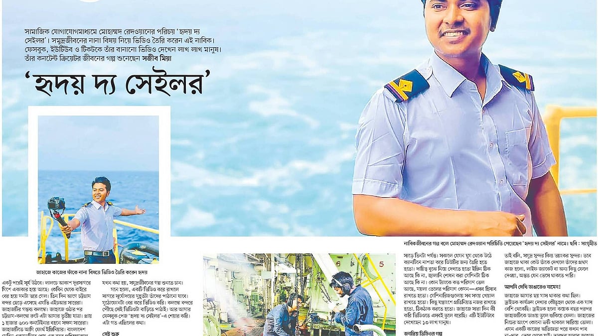 এই দুই তরুণের তুলনায় মোহাম্মদ রেদওয়ানের গল্পটা আলাদা। সামাজিক যোগাযোগমাধ্যমে মোহাম্মদ রেদওয়ানের পরিচয় ‘হৃদয় দ্য সেইলর’। সমুদ্রজীবনের নানা বিষয় নিয়ে ভিডিও তৈরি করেন এই নাবিক। ফেসবুক, ইউটিউব ও টিকটকে তাঁর বানানো ভিডিও দেখেন লাখ লাখ মানুষ। তাঁর কনটেন্ট ক্রিয়েটর–জীবনের গল্প অনেককে অনুপ্রাণিত করে।