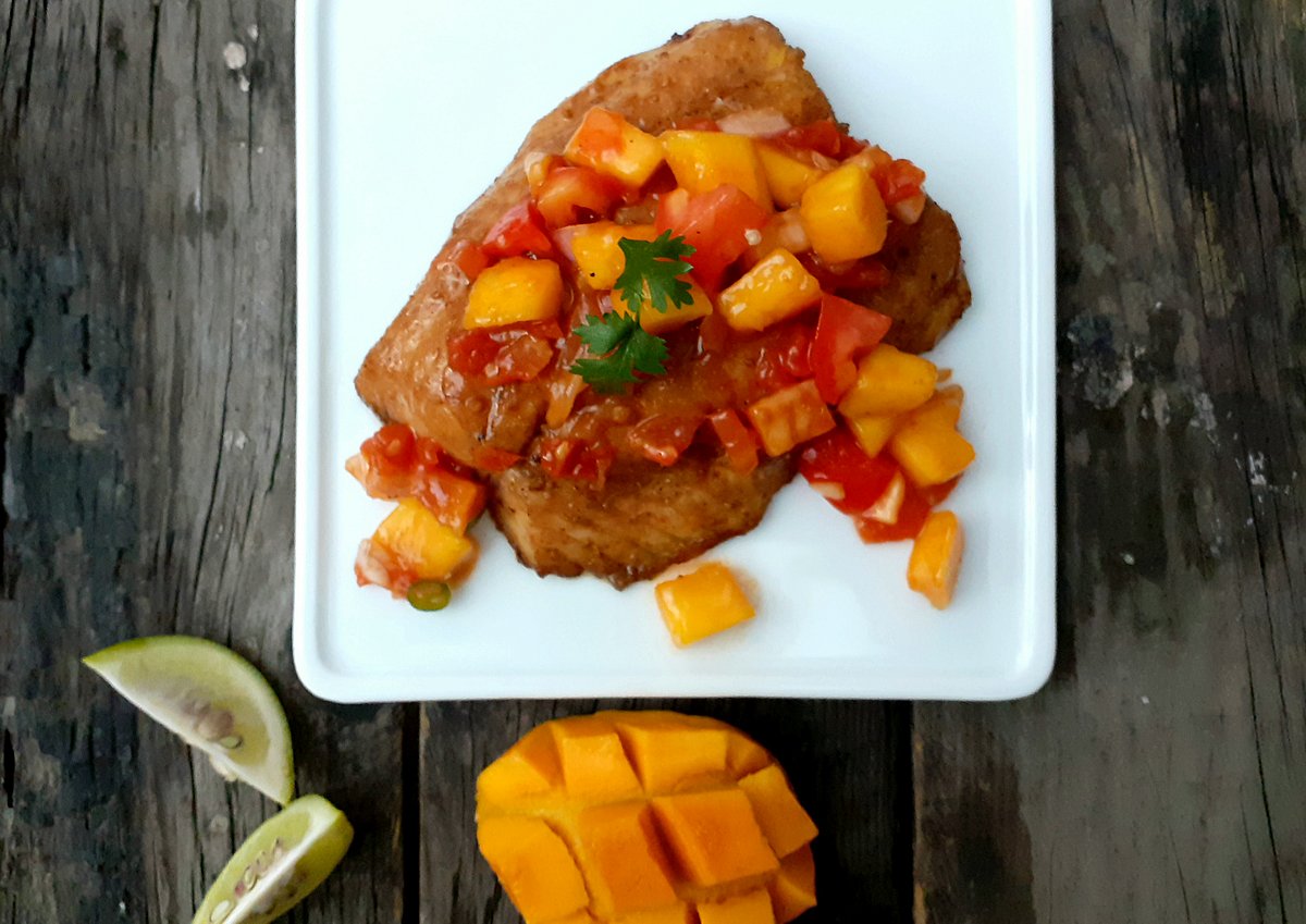 ম্যাংগো সালসার জন্য: পেঁয়াজকুচি সিকি কাপ, টমেটো কিউব ১ কাপ, আধা পাকা আম কিউব করা ১ কাপ, টমেটো সস ১/৩ কাপ, তাবাস্কো সস ১ টেবিল চামচ, রসুনকুচি ১ টেবিল চামচ, লবণ স্বাদমতো, ধনেপাতাকুচি পরিমাণমতো, কাঁচা মরিচকুচি স্বাদমতো বা মাখন ২ টেবিল চামচ।