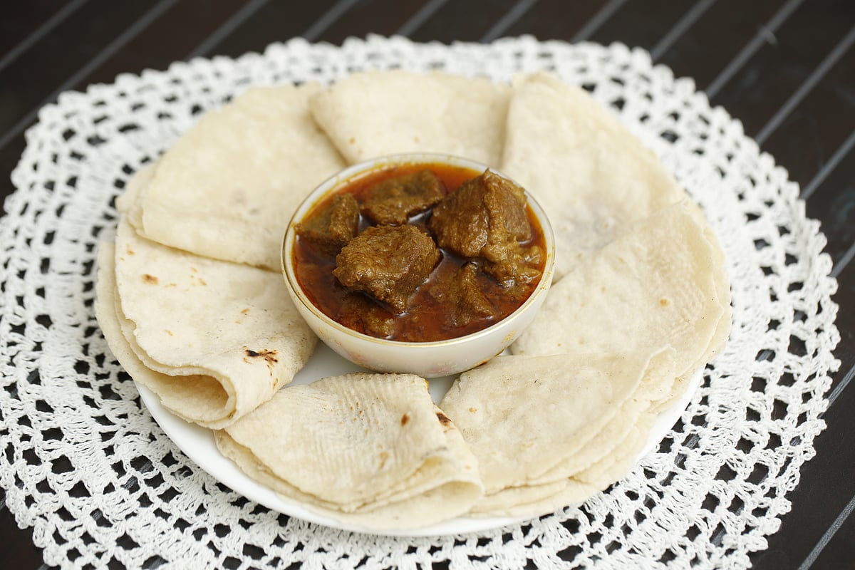 প্রণালি: লবণ, পানি চুলায় দিয়ে দিন। ফুটে উঠলে চালের গুঁড়া ও ময়দা দিয়ে খামির করে নিতে হবে। ঠান্ডা হলে ভালো করে মথে পাতলা রুটি বেলে তাওয়ায় সেঁকে নিন। ময়দা দিয়ে বানালে আটার রুটি অনেকক্ষণ নরম থাকে। না হলে বাতাস লাগলে চালের আটার রুটি শক্ত হয়ে যায়। চাইলে ময়দার পরিবর্তে আধা কাপ চালের গুঁড়া বাড়িয়ে দিতে পারেন।