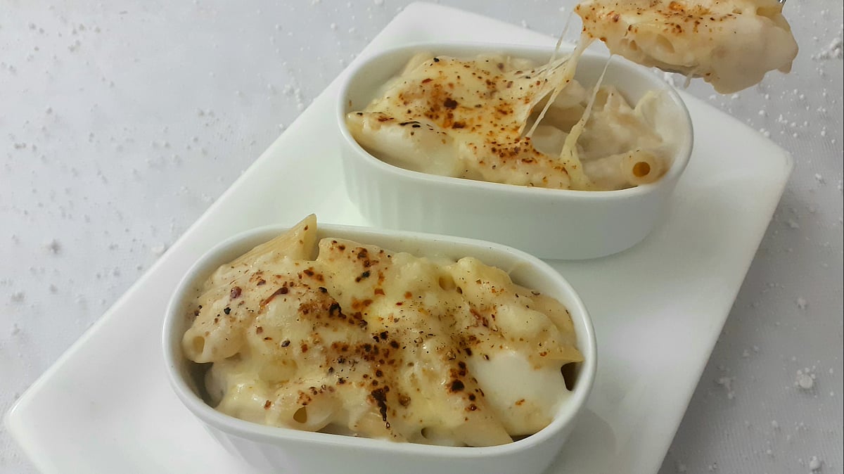 এবার সেদ্ধ করা পাস্তা দিয়ে হোয়াইট সসের সঙ্গে মিশিয়ে গ্রেট করা চিজ দিন। নেড়েচেড়ে চুলা থেকে নামিয়ে সিরামিকের বাটিতে ঢেলে নিন। এবার পাস্তার ওপরে গ্রেট করা চিজ দিয়ে স্বাদমতো গোলমরিচের গুঁড়া ও সামান্য চিলি ফ্লেক্স ছড়িয়ে দিন। ইলেকট্রনিক ওভেনে ১৬০ ডিগ্রি তাপমাত্রায় ১০ মিনিট বেক করে নামিয়ে সাহ্রিতে গরম–গরম পরিবেশন করুন।