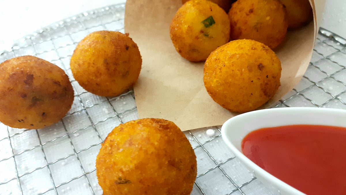 সেদ্ধ আলুর সঙ্গে সব উপকরণ একসঙ্গে মাখিয়ে নিন। এবার এক টেবিল চামচ পরিমাণ মাখানো আলু নিয়ে মাঝখানে চিজ কিউব স্টাফিং করে গোল গোল করে বল বানিয়ে নিন। একটি বাটিতে ডিম ভেঙে ফাটিয়ে নিন। বলগুলো ডিমে ডুবিয়ে ব্রেড ক্র্যামে গড়িয়ে নিন।