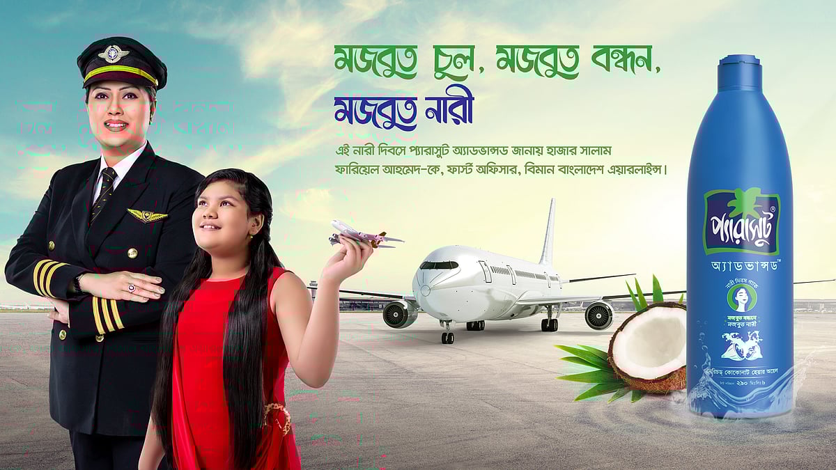 মজবুত চুল, মজবুত বন্ধন, মজবুত নারীদের সম্মাননা প্রদানের সঙ্গে, নারী ক্ষমতায়নের ওপর আলোকপাত করেছে প্যারাস্যুট অ্যাডভান্সড। এই নারী দিবসে ব্র্যান্ডটি নারী পাইলটদের সব বাধা অতিক্রম করে সফল হওয়ার গল্পকে সবার সামনে তুলে ধরেছে। উল্লেখ্য, ৮ মার্চ ২০২১ তারিখে প্রথম আলো অনলাইনে একটি টক শো সরাসরি সম্প্রচার করা হয়। অভিনেত্রী নাবিলার উপস্থাপনায় টক শোটিতে অতিথি হিসেবে দেখা যায় তিনজন তারকা নারী পাইলটকে। এ তিনজন পাইলট হলেন ফারিয়েল আহমেদ, ফার্স্ট অফিসার; সামিহা তাসনিম, ফার্স্ট অফিসার এবং সারাহ শামসুল, ফার্স্ট অফিসার।