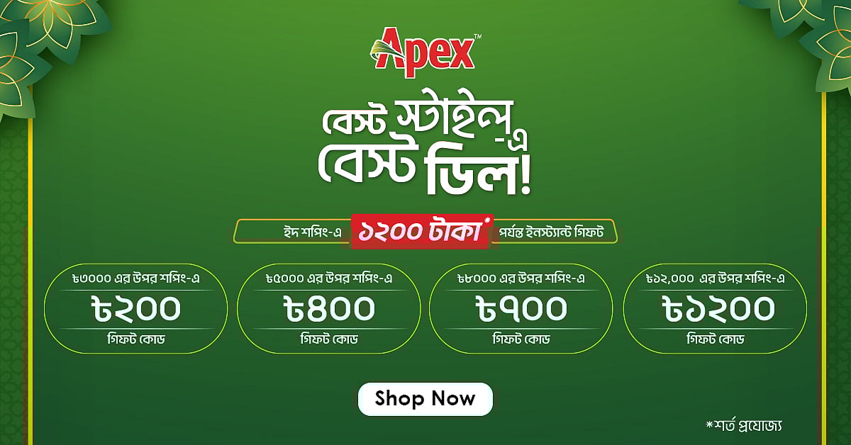 ঈদ এলেই সবার একটাই চিন্তা—কী পরব? যেটা পরব সেটা কি আমার স্টাইলকে সফলভাবে প্রতিফলিত করবে? এসব চিন্তা মুহূর্তেই দুশ্চিন্তায় পরিণত হতে পারে যদি না আপনি সচেতন থাকেন চলতি ধারা সম্পর্কে। কোন জুতা যাবে জামার সঙ্গে, পাঞ্জাবির সঙ্গেই-বা কী মানাবে? প্রশ্নগুলো ঘুরপাক খেতে থাকে মাথায়। তবে সবচেয়ে বড় চিন্তা হলো, নকশা ঠিক মনের মতো হবে কি না। আপনার ঈদ উদ্যাপনকে আরও আনন্দময় করে তুলতে এপেক্স নিয়ে এসেছে নতুন সব ঈদের সংগ্রহ।