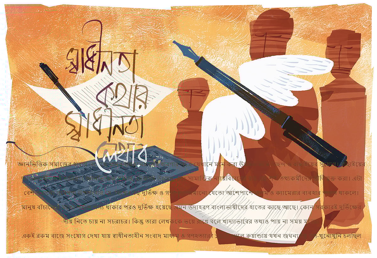রুয়ান্ডা, আফগানিস্তান বা সিরিয়া এবং তাদের মতো হতে চাওয়া দেশগুলো বিশ্বসমাজের জন্য প্রকৃতই এক বোঝা। নানা টানাপোড়েন সত্ত্বেও বিশ্বে নৈতিক ও আইনগত ভিত্তি হিসেবে মানবাধিকার বিষয়ে কিছু ঐকমত্য আছে। এ রকম সব দলিলের অপরিহার্য এক উপাদান বলা ও লেখার স্বাধীনতা। কিন্তু অনেক দেশ এবং সেখানকার মুরব্বিরা ক্ষমতা আঁকড়ে থাকার জন্য বৈশ্বিক সমাজ থেকে বিচ্ছিন্ন হওয়ার পথকে বেছে নিতে গিয়ে শেষমেশ পুরো জনপদকে দমবন্ধ অবস্থায় ঠেলতে থাকে। কর্তৃত্ববাদের হাতের তালুতে বন্দী হতে থাকা এমন দেশগুলোর মানুষের সামনে তখন বিকল্প থাকে মাত্র দুটি। হয় তারা উত্তর কোরিয়া বা সোমালিয়ার মতো হবে, কিংবা ডেনমার্ক, সুইডেন, নিউজিল্যান্ডের পথে এগোবে। নিশ্চয়ই শেষের দেশগুলোর লেখক-সাংবাদিকেরা সম্পূর্ণ বাধাহীন নন। কিন্তু তুলনামূলকভাবে সহনীয় এক সমাজে নিজেদের দায়িত্ব পালনের সুযোগ পান তাঁরা এবং সেই সুযোগ আরও বাড়ানোর কথা বলতেও পারেন। এটাই সে সমাজের মূল সৌন্দর্য। কলমের স্বাধীনতা ও মতামতের বৈচিত্র্যকে সেখানে সুন্দরের দরকারি এক মাপকাঠি বিবেচনা করা হয়—কেবল উঁচু উঁচু দালানকোঠা কিংবা বৈদ্যুতিক ট্রেনকে নয়।