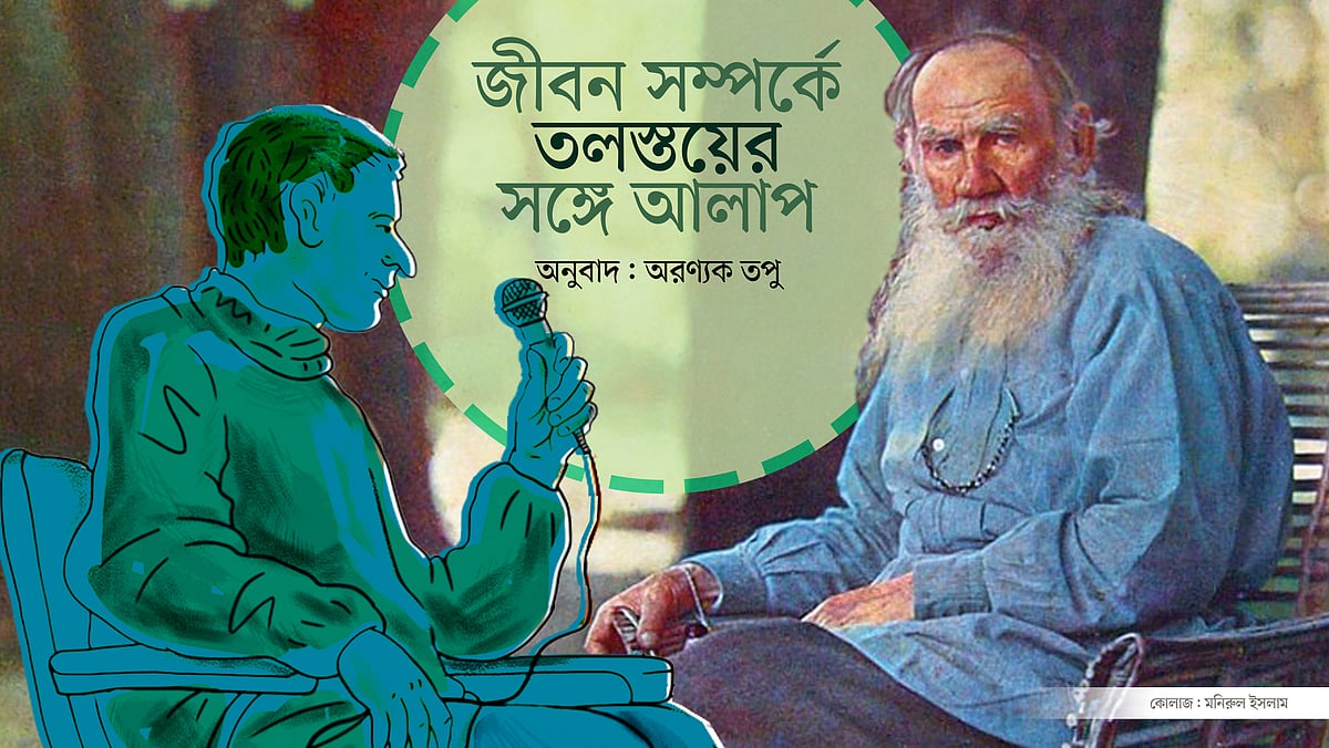 আজ কালজয়ী কথাসাহিত্যিক লিও তলস্তয়ের জন্মদিন। ২০১৮ সালের ২ নভেম্বর ‘রাশিয়ান বিয়ন্ড’ নামে একটি অর্ন্তজাল ম্যাগাজিনে প্রকাশিত হয়েছিল তলস্তয়ের এই সাক্ষাৎকার। সাক্ষাৎকারটি কাল্পনিক হলেও উত্তরগুলো নেওয়া হয়েছে তলস্তয়েরই দিনপঞ্জি থেকে। আন্তরিক এই কথোপকথনে, তলস্তয়কে তাঁর অনুতাপ, তাঁর কাজ, পরিবারের সঙ্গে সম্পর্ক এবং একজন মহান লেখককে বিষম নির্মম জগৎ সম্পর্কে চিন্তাভাবনা করতে দেখা যায়।