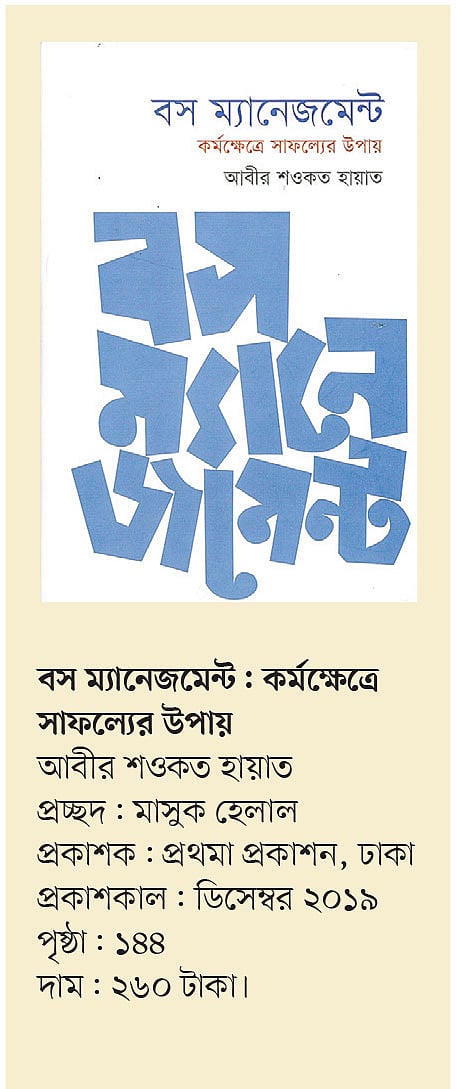 মোট ৩০টি বিদেশি, বিশেষত ইংরেজি ভাষায় লেখা এ–সংক্রান্ত গ্রন্থের ভাবানুসরণে লেখা হয়েছে বস ম্যানেজমেন্ট। ঝরঝরে ভাষায় লেখা বইয়ে শুধু বসের সঙ্গ মানিয়ে নেওয়ার কথাই বলা হয়নি, বলা হয়েছে বস ও তাঁর সাব-অর্ডিনেটের মধ্যকার সম্পর্ক যুক্তিসঙ্গত পর্যায়ে উন্নীত করার উপায় প্রসঙ্গেও। বইটি এ যুগের প্রত্যেক চাকরিজীবীর জন্য অবশ্যপাঠ্য। পাওয়া যাচ্ছে বইমেলায় প্রথমা প্রকাশনের প্যাভিলিয়নে (প্যাভিলিয়ন: ১৫)।