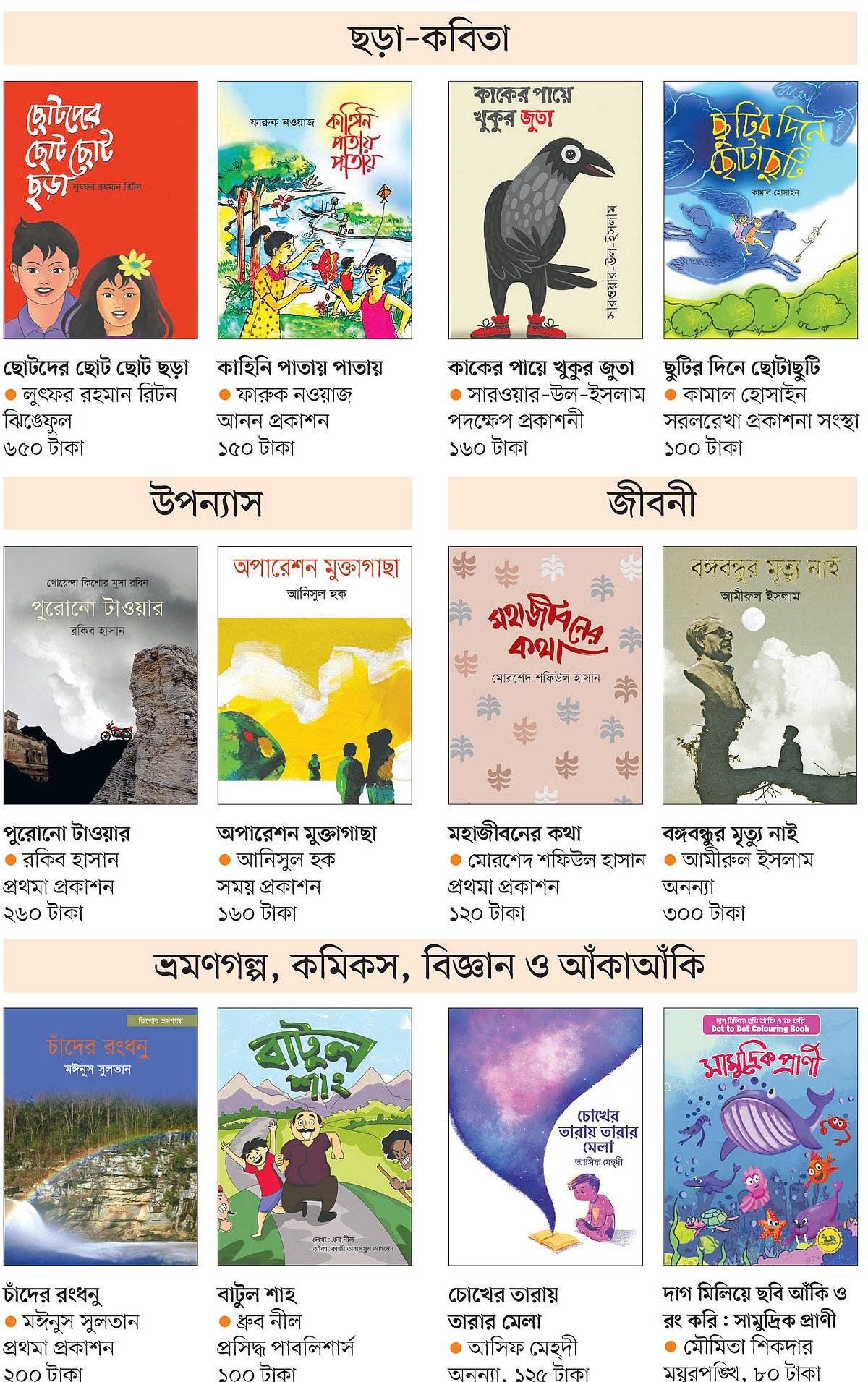 গোল্লা বন্ধুরা, শুরু হয়েছে একুশে গ্রন্থমেলা। নতুন বইয়ের মিষ্টি ঘ্রাণ কি নাকে এসে লাগছে? নিশ্চয়ই লাগছে। এত দিনে বইমেলা থেকে বই কেনার জন্য কিছু টাকা নিশ্চয়ই জমিয়েছ। কিন্তু কোন বইগুলো কিনবে? ঠিক না করে থাকলে এবারের বইমেলায় প্রকাশিত নতুন কিছু বইয়ের খবর জেনে নাও। আর যারা বইমেলায় যেতে পারবে না, তারা নিশ্চয়ই হাতের কাছের বইয়ের দোকান থেকে নতুন বই কিনে ফেলবে। যেখান থেকেই নাও বা উপহার পাও, নতুন বই পড়ার পর ভালো লাগলে জানাতে পারো আমাদের।