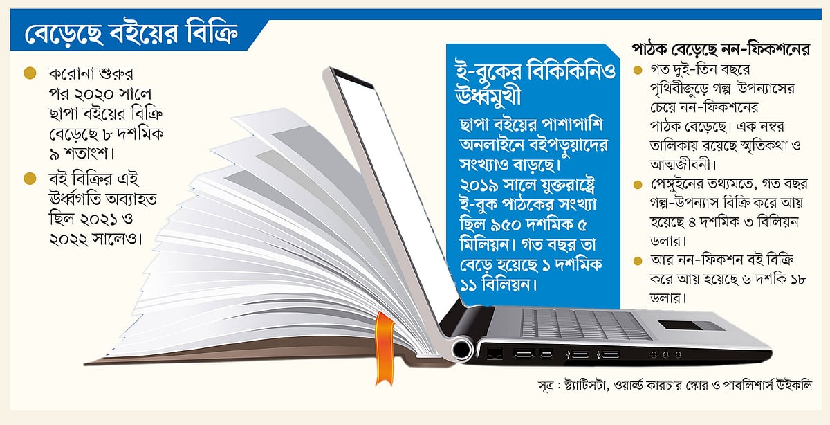 জরিপ ও পরিসংখ্যান বলছে ভিন্ন কথা। তথ্য–উপাত্ত বলছে, আবারও বইয়ের কাছে ফিরছেন মানুষ।