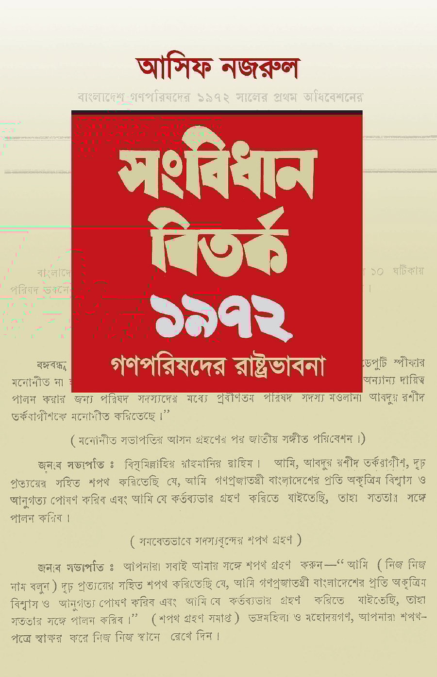 বই প্রসঙ্গে লেখক আসিফ নজরুল জানান, ‘বাংলাদেশের ১৯৭২ সালের সংবিধানটি রচিত হয়েছিল গণপরিষদের ৮ মাসের প্রচেষ্টায়। সে সময় বঙ্গবন্ধু, সৈয়দ নজরুল ইসলাম, তাজউদ্দীন আহমদ, এম মনসুর আলী, এ এইচ এম কামারুজ্জামান, ড. কামাল হোসেন, সুরঞ্জিত সেনগুপ্তসহ চার শতাধিক গণপরিষদ সদস্যের আলোচনা ও বিতর্ক লিপিবদ্ধ হয়েছিল পরিষদের কার্যবিবরণী ও অন্যান্য দলিলপত্রে। এই বইয়ে প্রথমবারের মতো এসব দলিল বিশ্লেষণ করা হয়েছে।