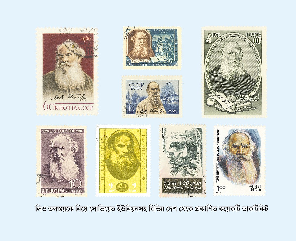 তলস্তয়কে নিয়ে বিশ্বজুড়ে ডাকটিকিট প্রকাশের পাশাপাশি উদ্বোধনী খাম, বিশেষ সিলমোহর, পোস্ট কার্ডসহ রয়েছে আরও অসংখ্য ডাক প্রকাশনা।