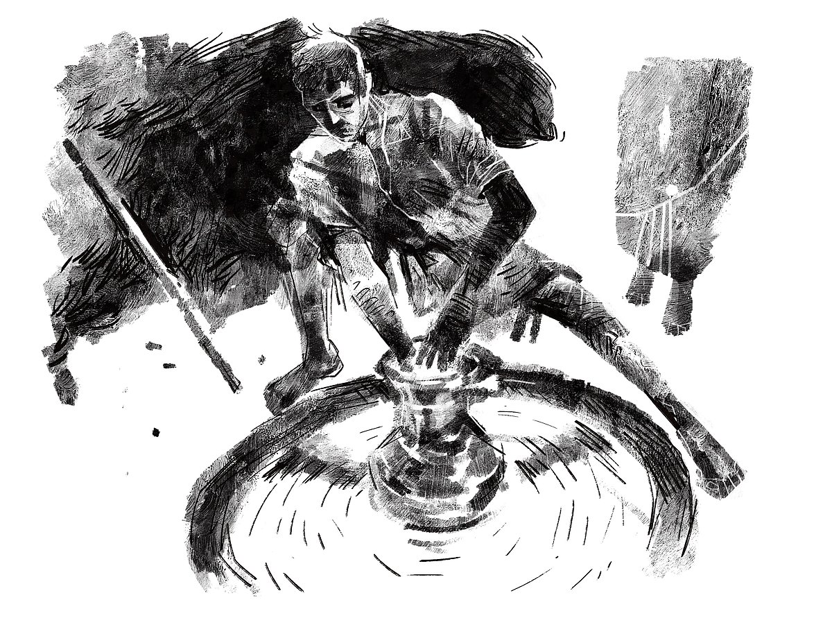 আজ এত বছর আগের ধুয়া কিংবা পইনের ভেতরে জ্বলতে থাকা আগুনের স্মৃতি প্রেমেন্দ্রর চোখকে ঘোলা করে দেয়। কেউ কেউ বলত, ‘ও দাদা, কুমারের হাতেনি আছে ঈশ্বরের ছোঁয়া? নাইলে এই যে চাক তুমি ঘুরাও, তার ভিতর থাইক্যা ক্যামনে বাইর অইয়া আসে এই সব জিনিস? কী নিখুঁতভাবে ঈশ্বরের অদেখা হাত য্যান একটা একটা কইরা তুমার হাতে তুইলা দেয় এই সব!’ অকস্মাৎ মেলার বায়নার কথা ভাবতেই প্রেমেন্দ্রর ভাবনায় ছেদ পড়ে। টাকা সে অগ্রিম নিয়ে আসে, তা যে করেই হোক জোগান দিতে হবে পাঁচ হাজার পুতুল, তিন হাজার সরা-পাতিল, মালসা। চিন্তাটা মাথায় আসতেই তন্দ্রা টুটে যাওয়ার মতো তার ধ্যানভঙ্গ হয়। তখনই দীপালির ডাক পড়ে।