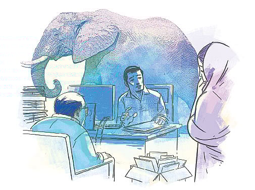 তিনি সামনে তাকালেন। দেয়ালে হাতিটা একই জায়গায় দাঁড়িয়ে আছে। তাঁকে একদৃষ্টে দেখছে।