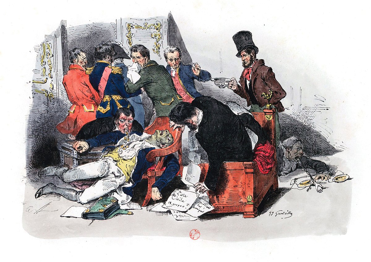 বড়লোকদের চিকিৎসক আর ওষুধ বগলদাবা করে স্বাস্থ্যকর জায়গায় পালানো দেখে সাধারণ মানুষ বিরক্তিতে বিড়বিড় করত। গরিবেরা দেখল, টাকা মৃত্যু থেকেও সুরক্ষা দেয়। তবে পুরো রাজপরিবার এই দুঃখময় সময়ে অভিজাত আচরণ করেছিল। কলেরা ছড়িয়ে পড়ার পর রানি তাঁর বন্ধু ও ভৃত্যদের মধ্যে ফ্লানেল (একধরনের নরম কাপড়) ব্যান্ডেজ বিতরণ করেন। ব্যান্ডেজগুলোর বেশির ভাগই তিনি নিজ হাতে বানিয়েছিলেন। যুগটা যেন ফ্লানেলে ফ্লানেলময়। নিষ্ঠুরতম শত্রুর বিরুদ্ধে শ্রেষ্ঠ বর্ম ছিল ওটা। আমিও আমার ঘাড় পর্যন্ত ফ্লানেলে ঢেকেছি। রাজা নিজে সর্বোৎকৃষ্ট বুর্জোয়া ফ্লানেল পরে থাকতেন। অনেক পাদরি ছদ্মবেশে জনতার মধ্যে মিশে একটা জপমালার কথা বলত। তারা বলত, এটা অব্যর্থ কলেরাজয়ী। বোনাপার্ট-সমর্থকেরা বলত, কলেরার লক্ষণ বোঝামাত্র প্লেস ভঁদোমের স্তম্ভের দিকে তাকিয়ে থাকতে হবে। তাহলে অসুখ অবশ্যই সারবে।