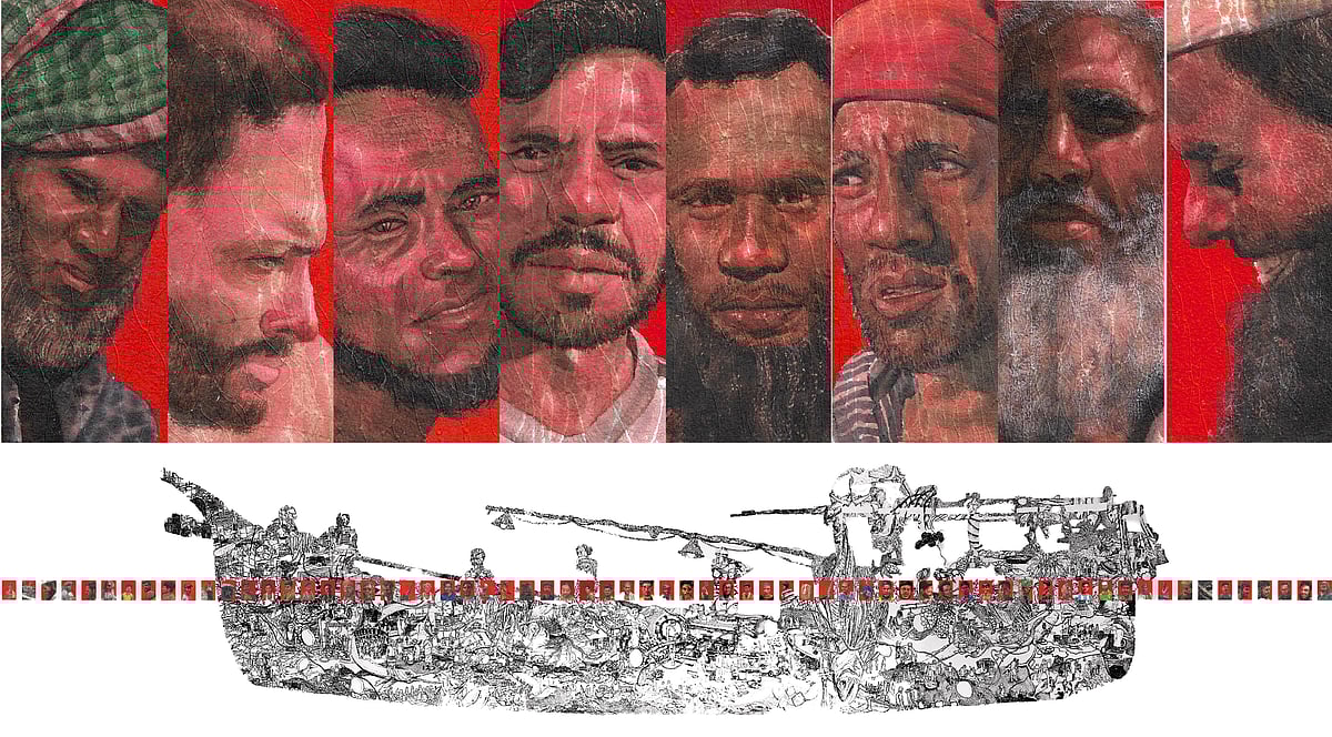 বিশাল পরিসরের এ সিরিজের গল্পগুলো মূলত জেলেদের জীবনের প্রতিটি উপাদান তুলে আনার প্রয়াস। জেলে ও মাঝি–মাল্লার চোখেমুখে প্রতিবিম্বিত হওয়া জীবনের ছবিগুলোই এখানে উঠে এসেছে। জেলেরা জলের সঙ্গে বাস করে তাদের যে কষ্ট, রোদে পোড়া চেহারা আর ত্যাগের সমীকরণ, তারই বহিঃপ্রকাশ শিল্পীর এই কাজ। প্রায় তেষট্টিটি জেলে মুখাবয়বসহ মোট সত্তরটি অংশের সমন্বয়ে ১১ ফুট বাই ৫৬ ফুট সাইজের এই শিল্পকর্মে শিল্পী পুরো জেলেজীবন তুলে ধরেছেন।