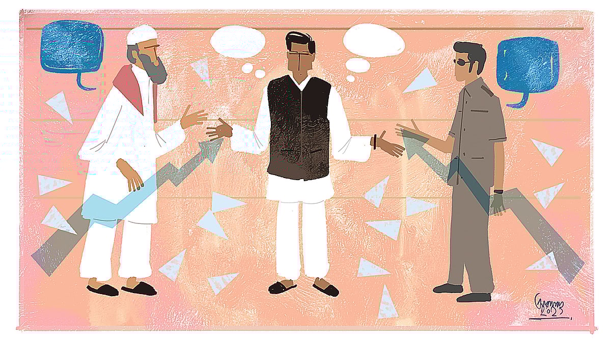 সরকারের মন্ত্রী-নেতা থেকে শুরু করে সমর্থক বুদ্ধিজীবীরা কথায় কথায় বিএনপি, জামায়াত ও হেফাজতকে ব্র্যাকেটবন্দী করেন। তাঁরা বোঝাতে চান যে নীতির দিক থেকে এই তিন পক্ষের মধ্যে খুব বেশি ফারাক নেই। কিন্তু সরকারের নীতিকৌশলের ক্ষেত্রে বিস্তর ফারাক। তারা বিএনপি-জামায়াতের বিরুদ্ধে যত কঠোর, হেফাজতের বেলায় ততটাই নরম ও আপসকামী।