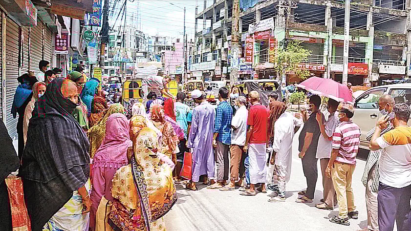 ২৭ মার্চ মহাখালীর ওয়্যারলেস গেটের সিঅ্যান্ডবি মাঠে দেখি, টিসিবির লাইনের পেছনে বসে দিনমজুর কাম আখের রস বিক্রেতা নুরজামাল বারবার টাকা গুনছেন আর খাতওয়ারি আলাদা করছেন। তাঁর সম্বল দেড় হাজার টাকা। রাত পোহালে ৫৫০ টাকা কিস্তি দিতে হবে। কত টাকা দিয়ে ভাগে পণ্য কিনবেন আর কত টাকা জমা রাখবেন, এ নিয়ে তাঁর হিসাব কুলায় না। নুরজামাল যেন কথাসাহিত্যিক জাকির তালুকদারের আজগর আলীর হিসাববিজ্ঞান গল্পের আজগর আলীর মতো বিড়বিড় করে বলেছেন, ‘কিস্তি, ভাঙা হাত, চাল-ডাল, নাতি-নাতনির একটু শখ, ঘরফেরত খরচ। এই টাকা দিয়ে কি সব হবে না?’