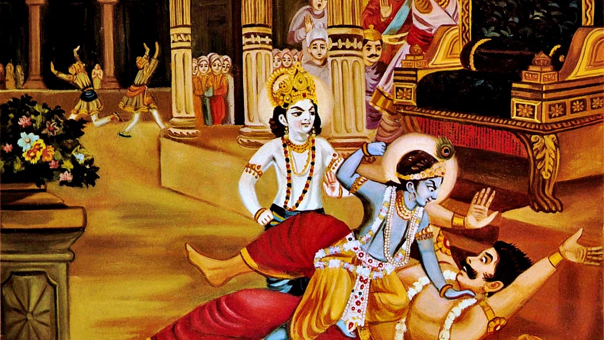 তিনি বলরাম ও কৃষ্ণকে আনার জন্য অক্রূর নামে একজন যাদবপ্রধানকে বৃন্দাবনে পাঠালেন এবং নিজের বিখ্যাত মল্লদের দিয়ে দুই ভাইকে হত্যার জন্য ধনুর্মুখ নামে এক যজ্ঞের আয়োজন করলেন। বলরাম ও কৃষ্ণ অক্রূরের সঙ্গে সেখানে এসে রঙ্গভূমিতে ঢুকে কংসের শিক্ষিত হাতি কুবলয়াপীড়, লব্ধপ্রতিষ্ঠ মল্ল চাণূর ও মুষ্টিককে হত্যা করলেন। কংস এসব দেখে নন্দকে লোহার শিকলে বেঁধে রাখার এবং বসুদেবকে হত্যার আদেশ দিয়ে কৃষ্ণ-বলরামকে তাড়িয়ে দিতে বললেন। তখন যে মঞ্চে বসে কংস ও অন্যান্য যাদব মল্লযুদ্ধ দেখছিলেন, ক্রুদ্ধ কৃষ্ণ এক লাফে সেখানে উঠে কংসকে চুল ধরে টেনে মল্লভূমিতে এনে ফেললেন এবং চোখের নিমেষে হত্যা করলেন। পরে বসুদেব-দেবকী প্রমুখ গুরুজনকে যথাবিহিত বন্দনা করে কংসের পিতা উগ্রসেনকে সিংহাসনে বসালেন। নিজে রাজা হলেন না। হরিবংশ ও পুরাণসমূহে এমন কংসবধ-বৃত্তান্ত বলা হয়েছে।