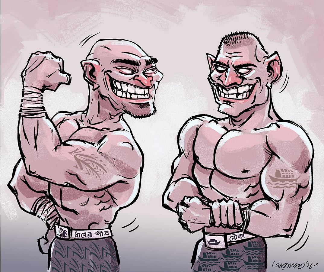 আপাতনিরীহ এই দুটি অতি প্রয়োজনীয় জিনিসের মধ্যে এখন সাংঘাতিক আড়াআড়ি। কেননা, এর মধ্যে রাজনীতি জড়িয়ে গেছে। আওয়ামী লীগ এবং বিএনপি রাজনীতির মধ্যে পরস্পরের প্রবল প্রতিপক্ষ। আওয়ামী লীগের আছে নৌকা। বিএনপির আছে ধানের শীষ। অন্য দলগুলোর আলাদা প্রতীক থাকলেও রাজনীতির মাঠে তারা বিশেষ সুবিধা করতে পারছে না। তারা বড় দুই দলের কক্ষপথে ঘুরপাক খাচ্ছে। এর বাইরে যারা টিমটিম করে জ্বলছে, তাদের আলো তেমন ছড়ায় না।