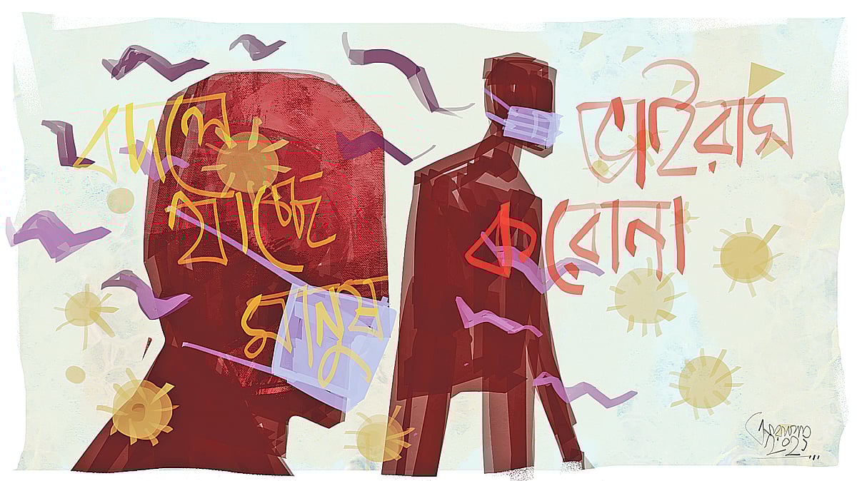 সহাবস্থান ও পর্যায়ক্রমিক নিয়ন্ত্রণের কৌশলে না গিয়ে করোনাভাইরাসটিকে যত কোণঠাসা করা হবে, ‘সিলেকশন প্রেশার’ বা নির্বাচনী চাপে তত দ্রুত তার পরিবর্তন ঘটবে এবং খুব অল্প সময়ের মধ্যে অভিনব সব লাগসই সক্ষমতাসম্পন্ন নতুন প্রজাতির বিকাশ ঘটবে, যা হয়তো-বা অবলীলায় বাতাসে উড়ে বেড়াবে এবং মানবসৃষ্ট সব প্রতিরোধকে সহজেই ফাঁকি দিতে পারবে। কিংবা এখনকার চেয়ে আরও কমসংখ্যক ভাইরাস শ্বাসতন্ত্রকে প্রবলভাবে আঁকড়ে ধরে মানুষকে পুরোপুরি কাবু করে ফেলবে, যাদের হয়তো দু-তিন স্তরের মাস্ক দিয়েও আটকে রাখা যাবে না। অতিমারি-মহামারিকালে ভাইরাসের নতুন নতুন ভেরিয়েন্টের পাশাপাশি আবির্ভাব ঘটে নানা রকম ভয়ংকর ব্যাকটেরিয়া ও ফাঙ্গাসের, যা স্বাভাবিক সময়ে ডরমেন্ট বা সুপ্ত অবস্থায় থাকে, ‘ব্ল্যাক ফাঙ্গাস’ তারই একটি নমুনা।