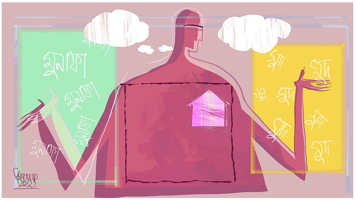 সম্প্রতি মুনাফা আর সুদ এক না ভিন্ন—এ রকম কিছু আলোচনা পত্রপত্রিকায় আলোচিত হচ্ছে। পত্রপত্রিকায় যেহেতু গণমানুষের আশা–আকাঙ্ক্ষা এবং জিজ্ঞাসার প্রতিফলন ঘটে, তাই ধরে নেওয়া যায় বিষয়টি সাধারণ মানুষেরও জিজ্ঞাস্য। যেমন, ‘সঞ্চয়পত্রে বিনিয়োগ করলে সাধারণ ভবিষ্য তহবিল, প্রদেয় ভবিষ্য তহবিলে সরকার যে আর্থিক সুবিধা দেয়, তা মুনাফা না সুদ? সরকারের দিক থেকে অবশ্যই সুদ। কিন্তু সুবিধাভোগীরা একে সুদ বলতে নারাজ। তাঁরা স্বাছন্দ্যবোধ করেন মুনাফা বলতে। সরকারের হিসাবের খাতায় যা সুদ, বিনিয়োগকারীদের কাছে সেটাই হচ্ছে মুনাফা’—এ রকম লেখা উঠে আসে গত ২৮ ডিসেম্বর, ২০২০ তারিখে দৈনিক প্রথম আলো পত্রিকায়। কিন্তু মুনাফা আর সুদের পার্থক্য এতে সরলীকরণ করা যায় না। অর্থনীতির প্রতিষ্ঠিত সূত্রাবলি এমনকি প্রচলিত ফাইন্যান্সের তত্ত্ব অনুযায়ী, সুদ ও মুনাফা সার্বিকভাবেই ভিন্ন অর্থ বহন করে।