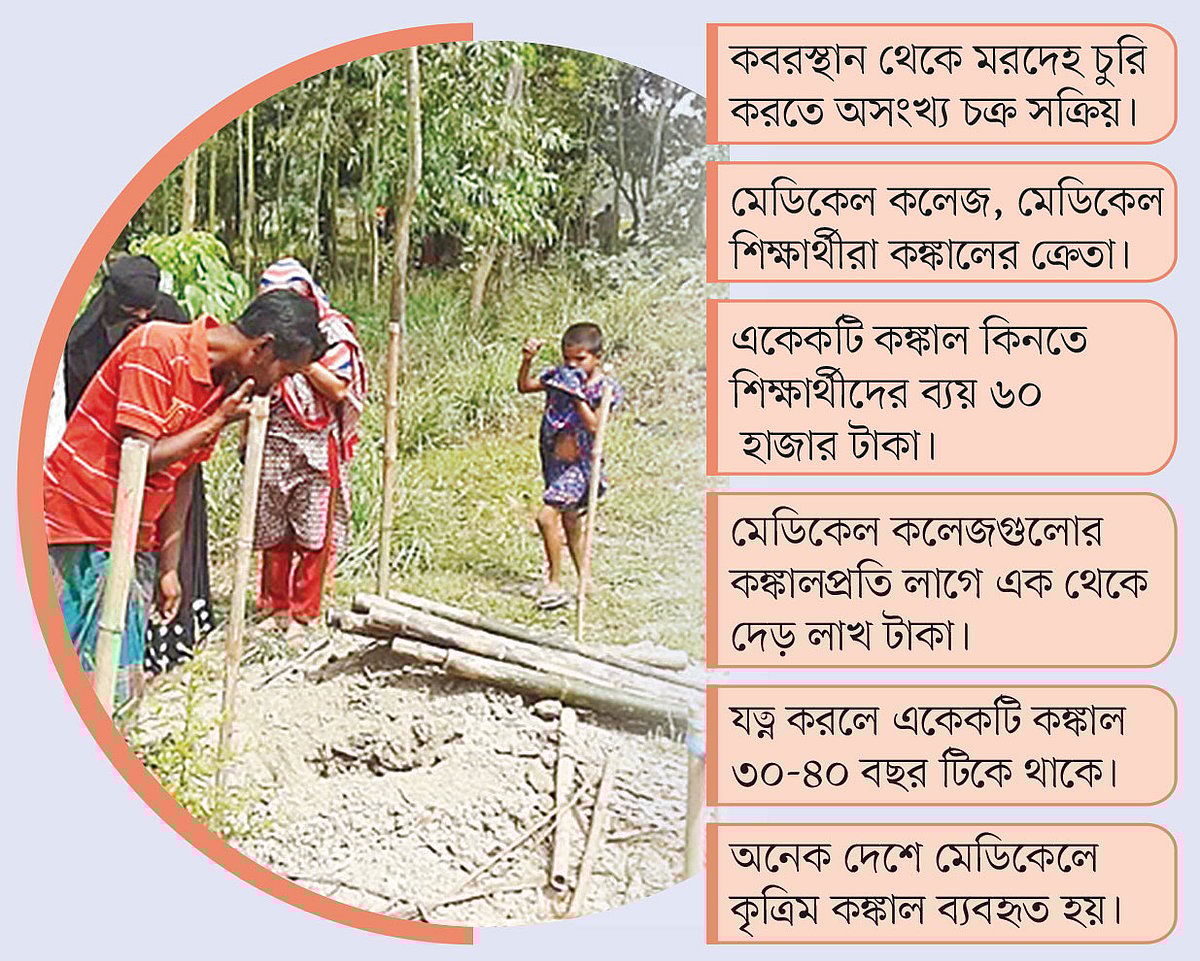 সম্প্রতি দেশের বিভিন্ন এলাকায় কবরস্থান থেকে মরদেহ চুরি হচ্ছে। এসব মরদেহ থেকে কঙ্কাল বানিয়ে বড় অংশ মেডিকেল কলেজ, সেখানকার শিক্ষার্থী এবং প্রতিবেশী দেশে পাচার করা হয়।